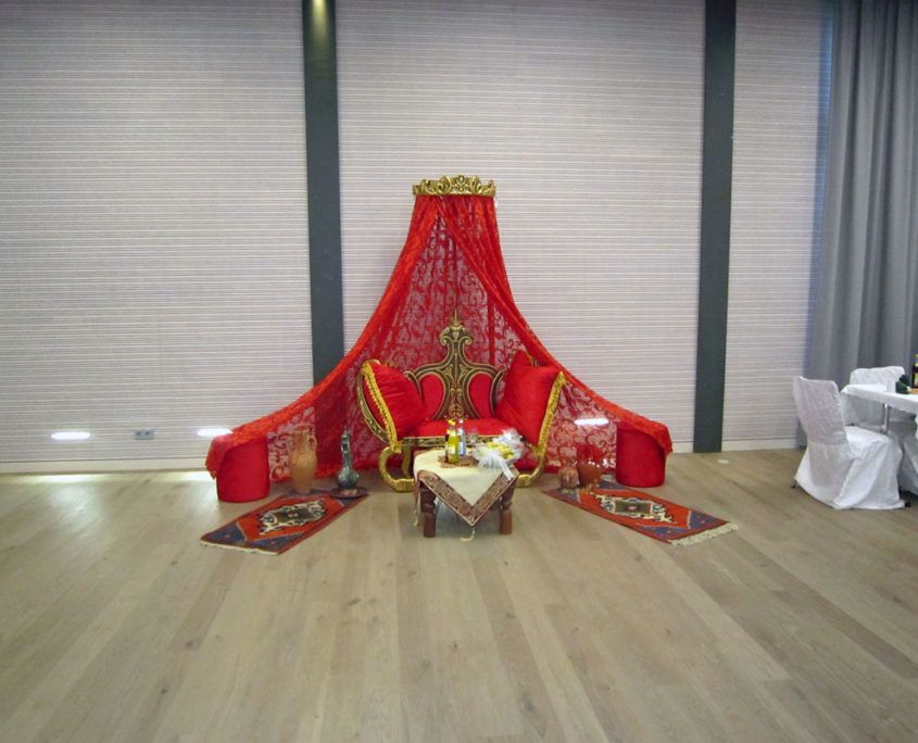 Wie bei einer solchen Feier üblich war ein separater schmuckvoll gedeckter Tisch des Verlobungspaars vorbereitet.
